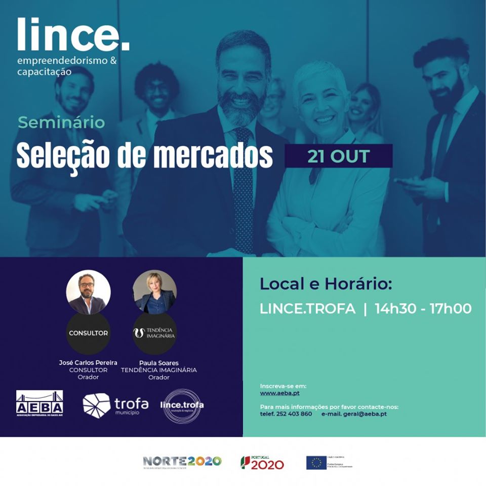 Dia 21, no lince.trofa, incubadora da AEBA, Associação Empresarial do Baixo Ave, vai decorrer o seminário “Seleção de Mercados“.